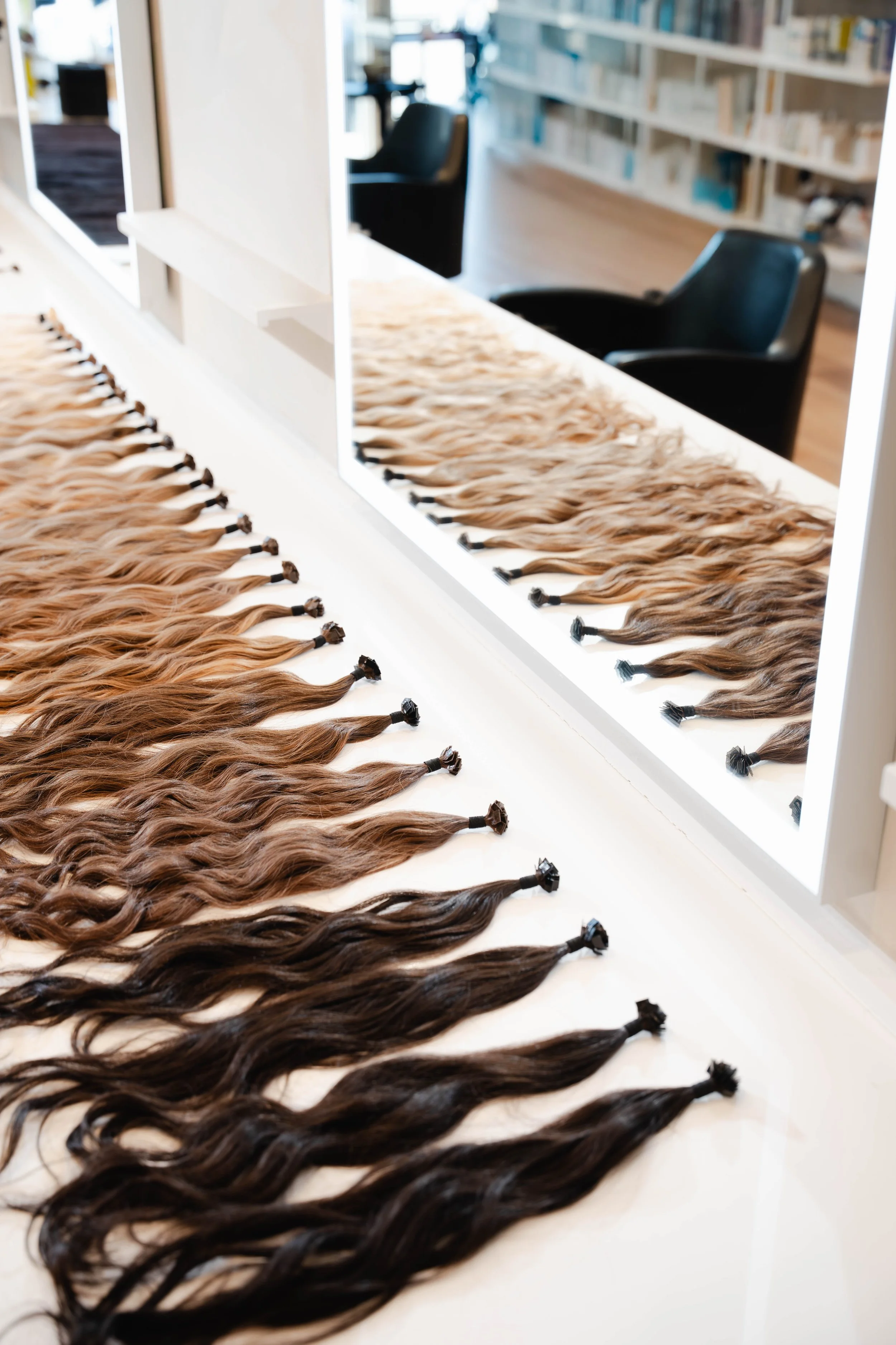 At Alexandra Siles Salon, we use Orahhair, our own in-house luxury extension line. We stock every shade, length, and texture so we can match your color, density, and natural pattern with complete precision.